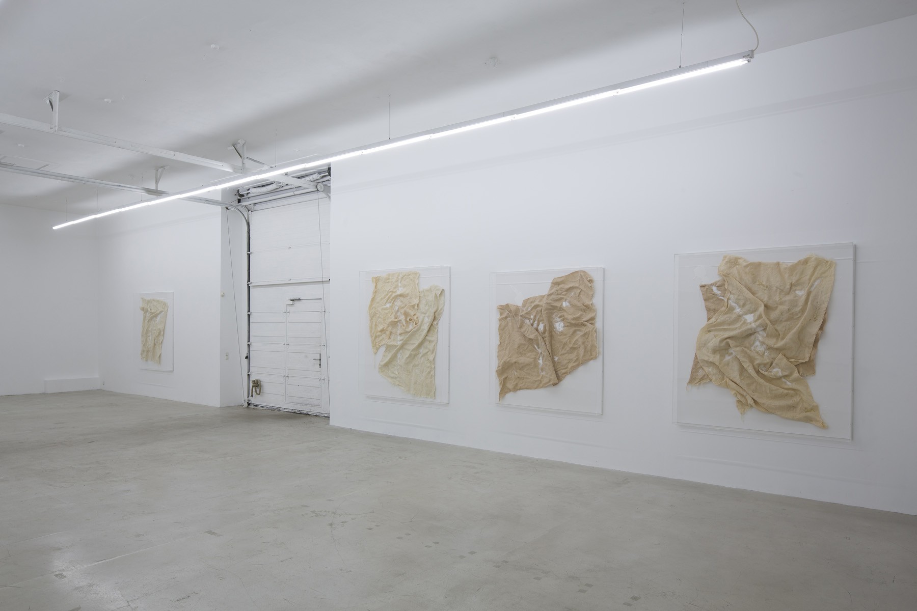 O. T., 2015 | Hessian, pigment and epoxy resin on wood, acrylic glass cover | 192(h) x 167 x 16 cm / 75½(h) x 65¾ x 6¼ in