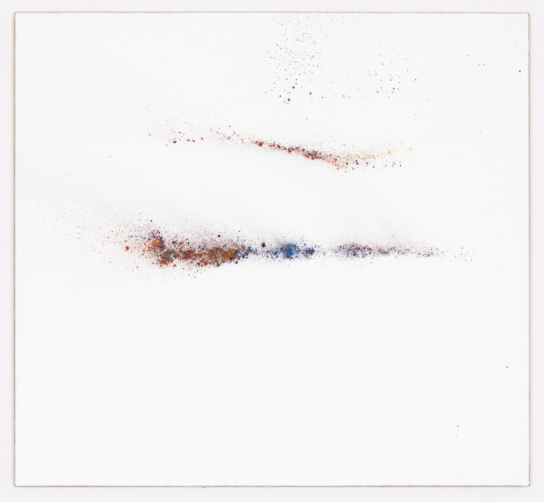 The Pigmentbilder are captivating in their compositional ease and sensual complexity. Loose pigments are applied directly onto a particularly altered canvas. As non-representational as these images are, they celebrate the act of painting itself.
