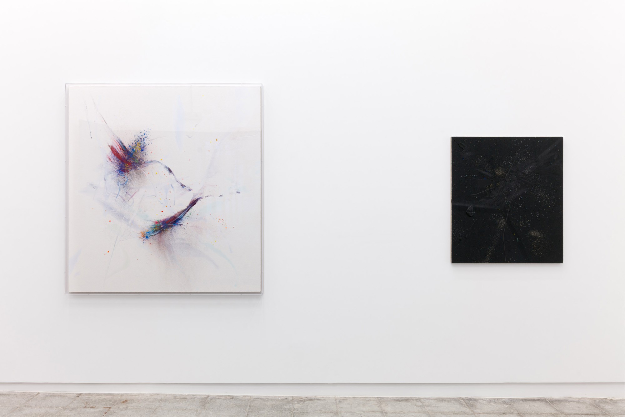 One Another, as an exhibition, both sets a pace that advances through the rooms, through three of the pictorial models that have constituted Thilo Heinzmann’s recent work, and brings together some of his most frequent materials. This creates a pictorial universe that oscillates between the total conception of the painting – or, in other words, the relationship between the painting and the pictorial object as a whole – and the succession of discontinuities and fractures that arise in each of them. The brushstrokes, layers, and lines overlap in such a way that there are no marks with which to reconstruct the process of the gestures; Rather, this process opens up to its opposites: from the atomic to the universal, from the explosive to the implosive.