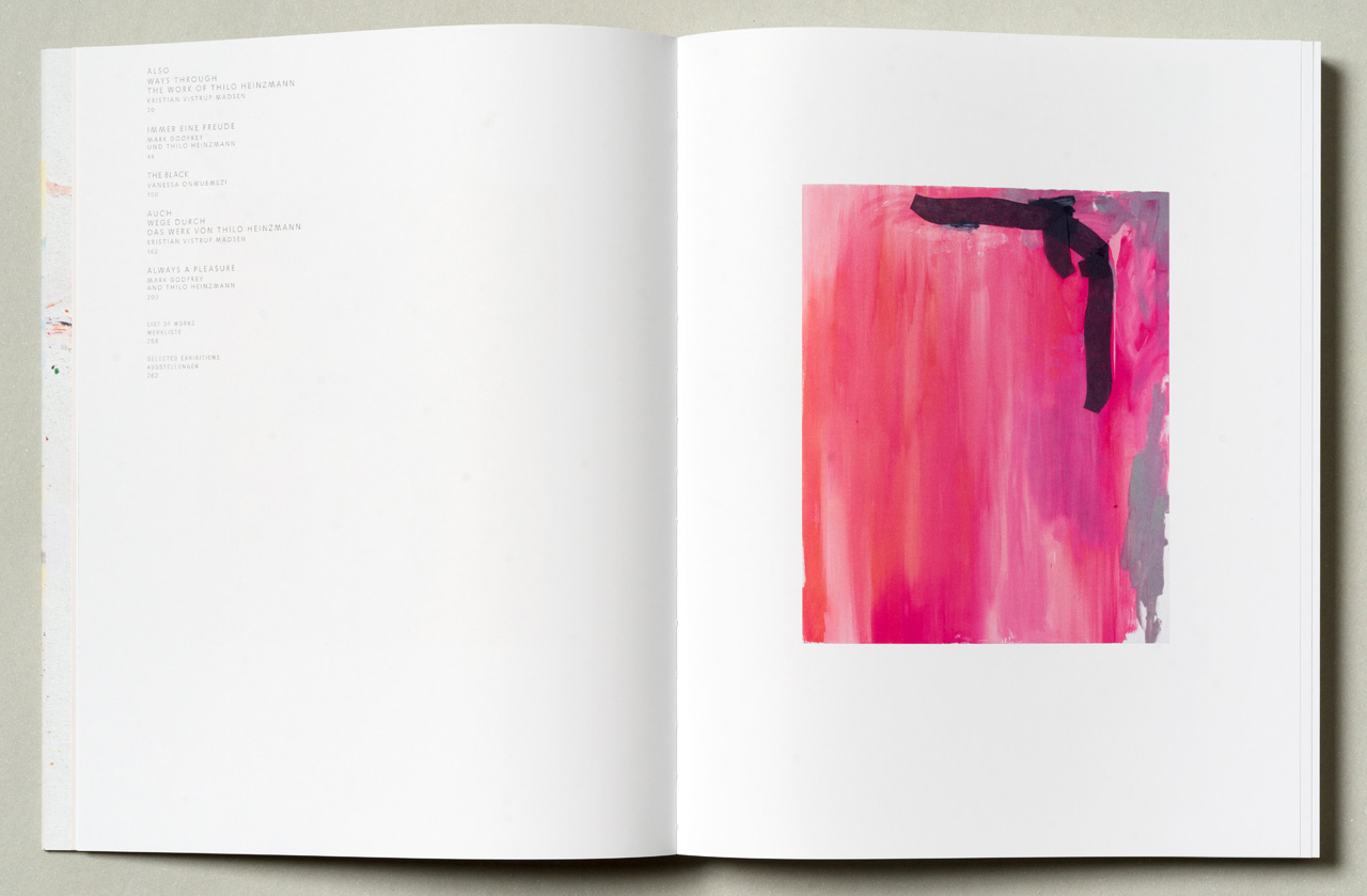 Mit einem Gespräch zwischen Heinzmann und Mark Godfrey, einem Essay von Kristian Vistrup Madsen und einem Gedicht von Vanessa Onwuemezi