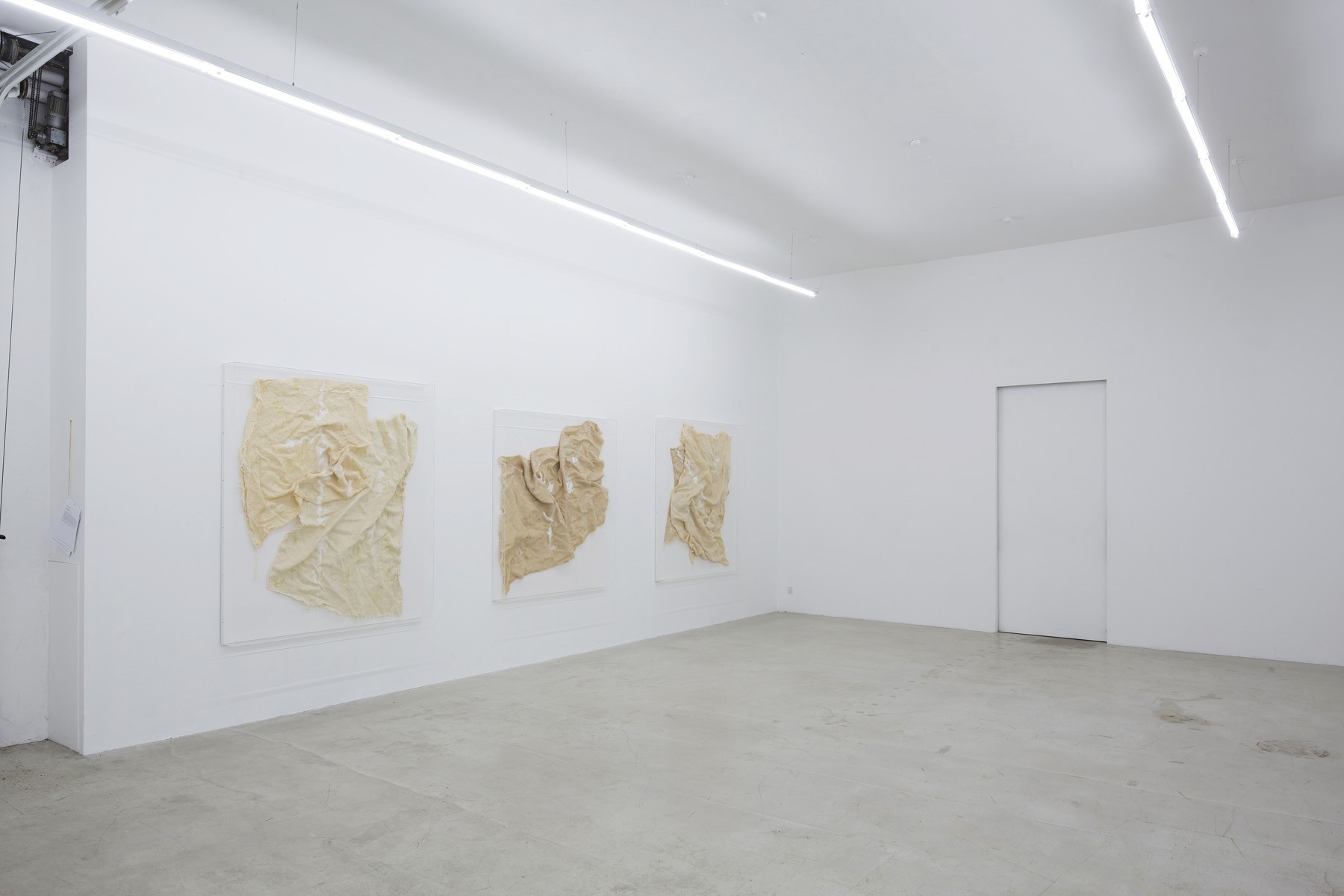 O. T., 2015 | Hessian, pigment and epoxy resin on wood, acrylic glass cover | 192(h) x 167 x 16 cm / 75½(h) x 65¾ x 6¼ in